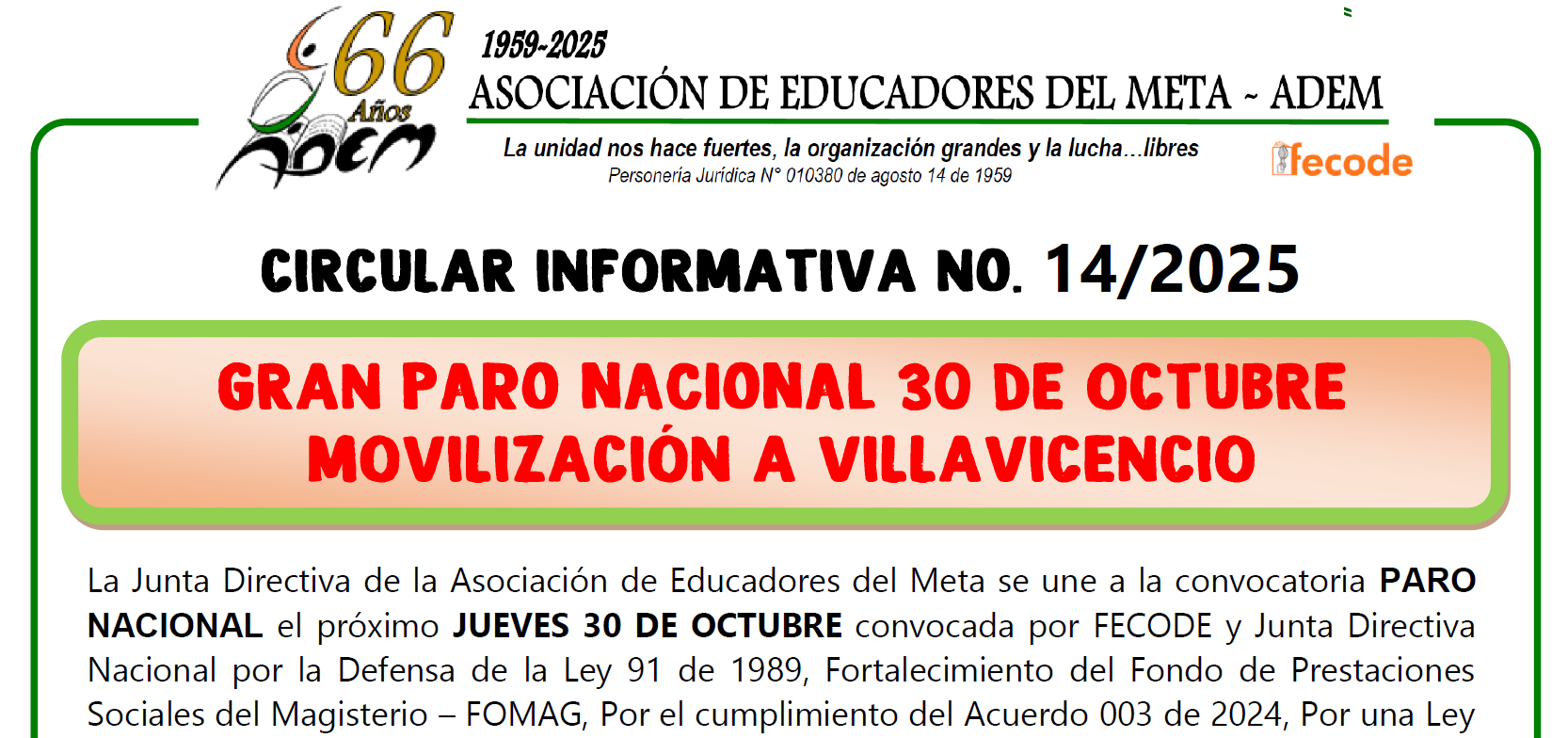 Actualidad Circular Informativa No 14/2025 Los invitamos a leer y compartir la noticia 👉 Leer más...Circular Informativa No 14/2025
