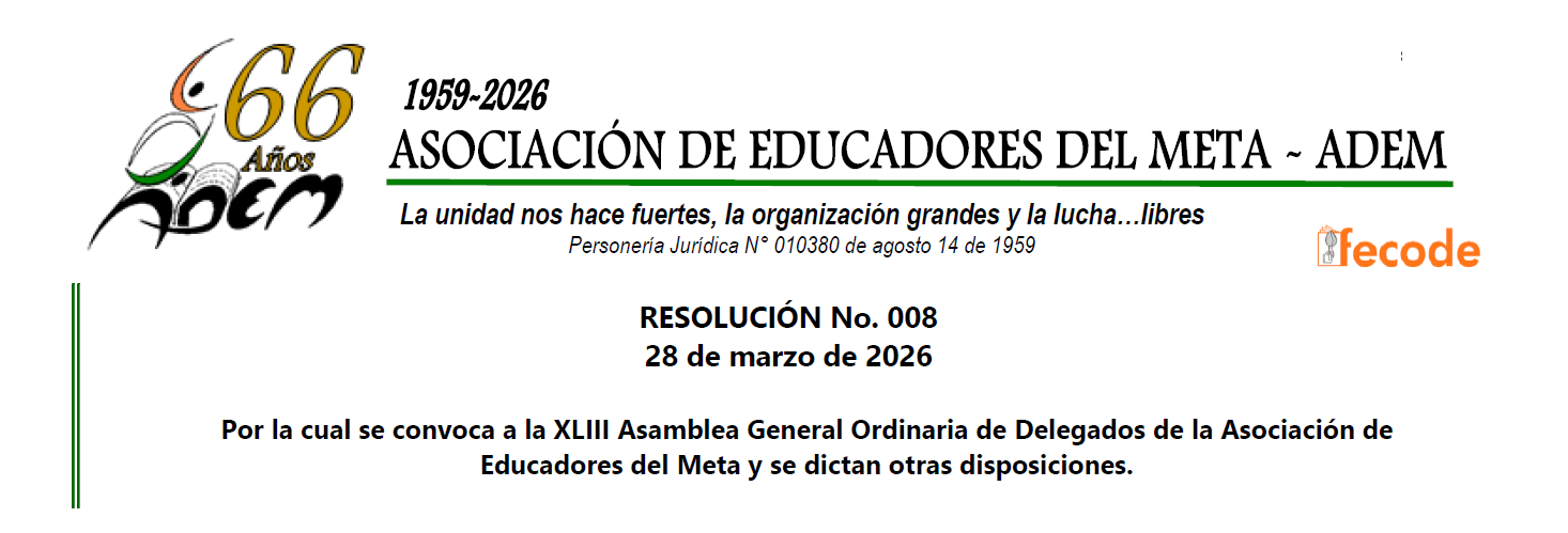 Actualidad Resolución No 008 de 2026 - Convocatoria a la XLIII Asamblea General Ordinaria de Delegados Los invitamos a leer y compartir la noticia 👉 Leer más...Resolución No 008 de 2026 - Convocatoria a la XLIII Asamblea General Ordinaria de Delegados