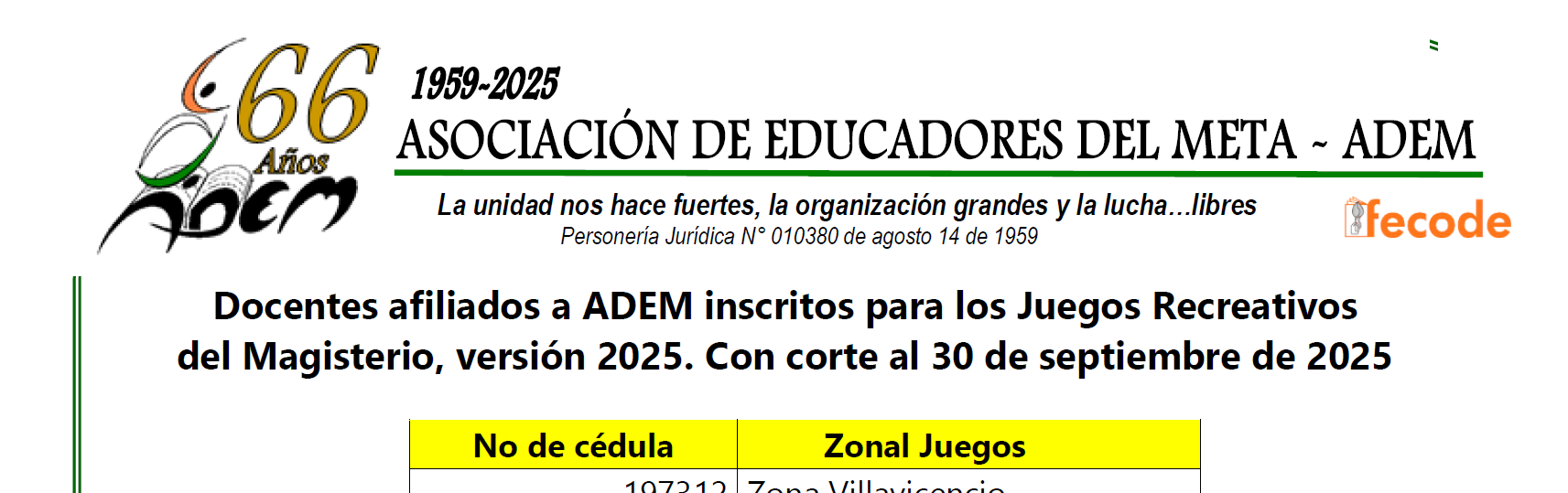 Actualidad Inscritos Juegos Deportivos Recreativos del Magisterio ADEM 2025 Los invitamos a leer y compartir la noticia 👉 Lee más: Inscritos Juegos Deportivos Recreativos del Magisterio ADEM 2025